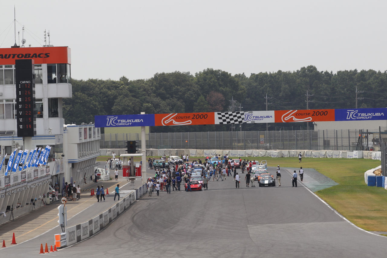 車検をパスしコースに整列したマシンの回りに、メカニックやサポートの方が集まり、
