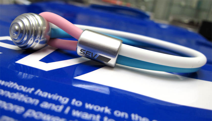 「SEVルーパーブレスレット2」のカスタムオーダーカラーの引き渡し中。