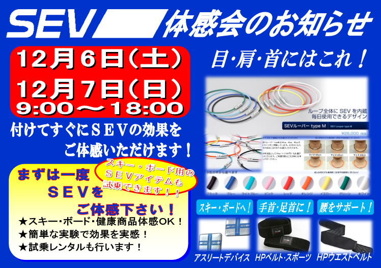 スキー・スノーボードでSEVアイテムをお試しされたい方は