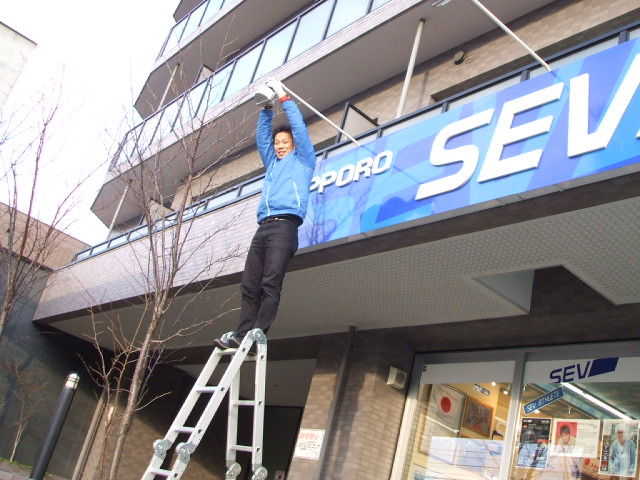 ということで、アイドルタイムを使って外看板の電球交換チャレンジ
