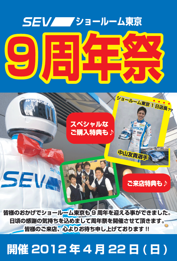 ☆SEVショールーム東京9周年祭を開催致します☆