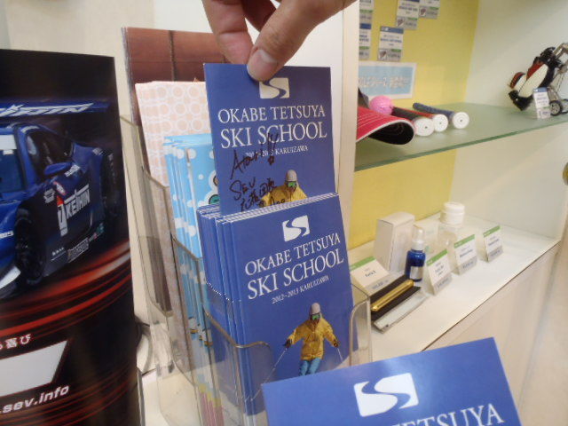 レジ横にございます、「スキースクール」のパンフレットへ