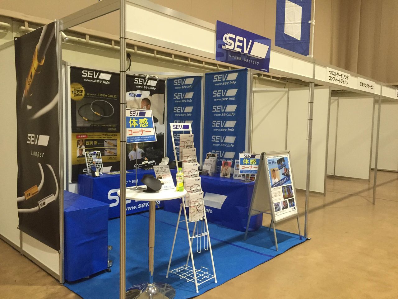 角地の一番目立つところにSEVブースを設置しております