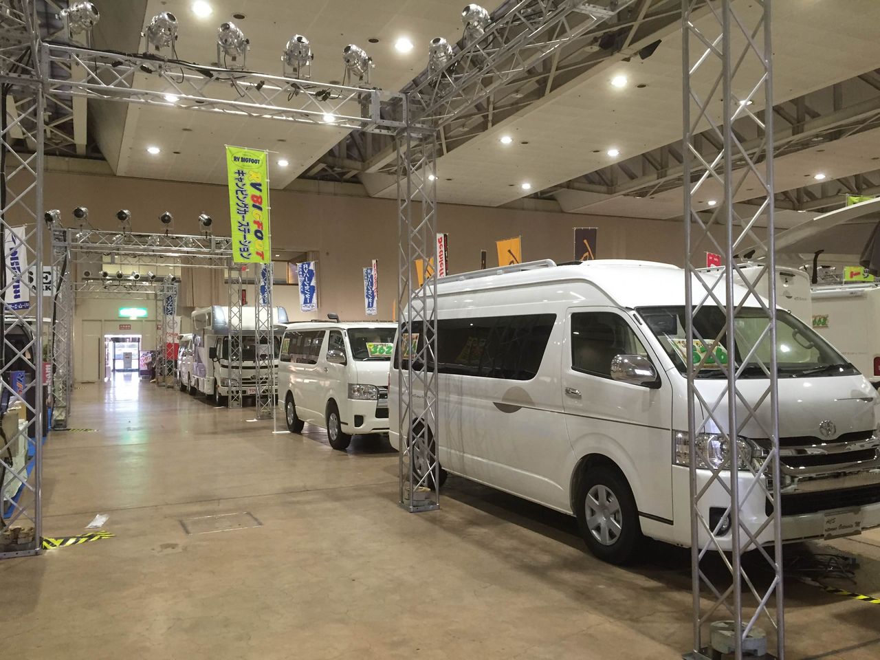 最新のキャンピングカーがずらり