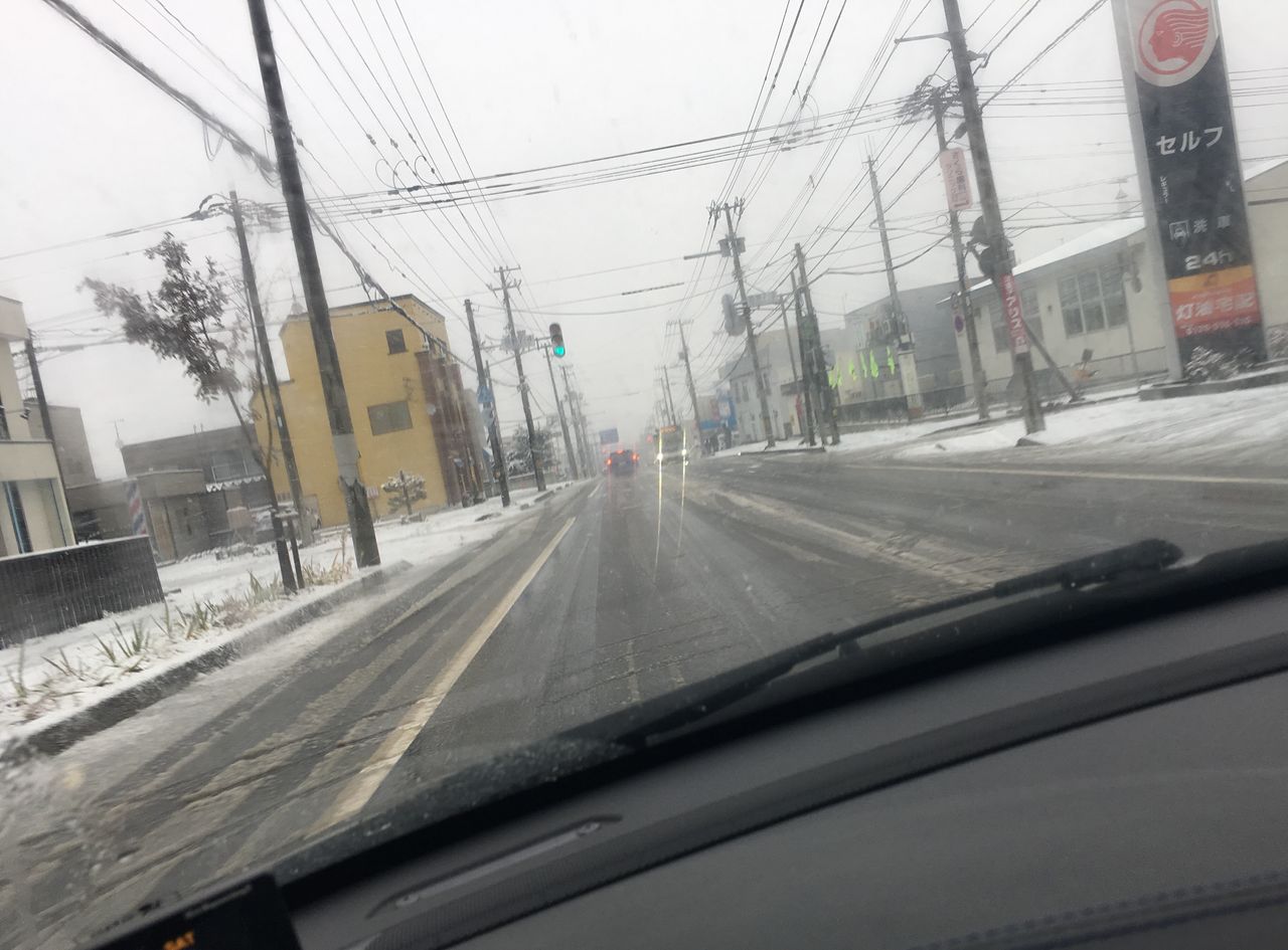 営業車で運転中に雪が降ってきて